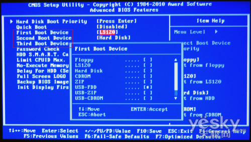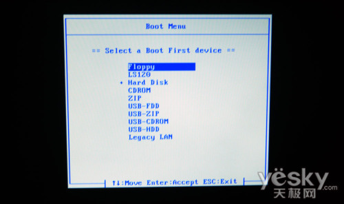 這個(gè)是技嘉主板彈出來(lái)的,是按照設(shè)備分類進(jìn)行選擇,這樣不太直觀,比如USB HDD、USB FDD之類比較容易混淆,LS120大家普遍都不知道是什么。