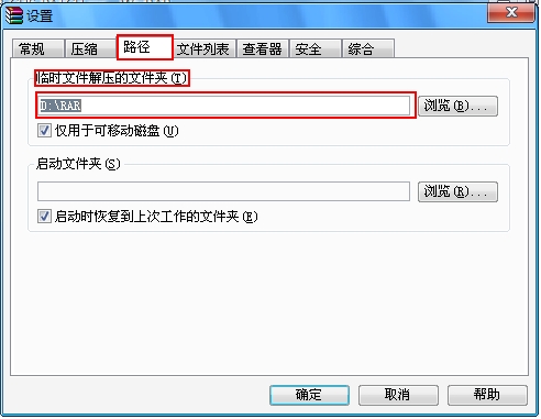 - 在 設(shè)置-->路徑-->臨時文件解壓的文件夾 下設(shè)置想要臨時解壓的磁盤路徑(這里推薦D:\RAR)