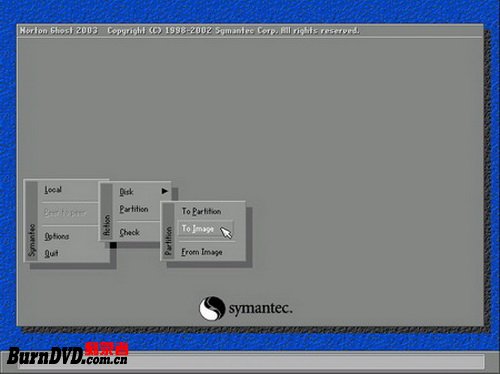 本實(shí)例準(zhǔn)備把系統(tǒng)分區(qū)備份為一個(gè)映像文件,因此將鼠標(biāo)指向“Partition(分區(qū))”菜單命令,并在彈出的下一級(jí)子菜單中單擊“To Image(到鏡像)”選項(xiàng),如圖2009012390所示。