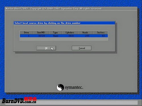 - 第4步,在打開(kāi)的“Select local source drive by clicking on the drive number(選擇并在驅(qū)動(dòng)器列表中單擊本地源驅(qū)動(dòng)器號(hào))”對(duì)話框中,單擊選中系統(tǒng)分區(qū)所在的硬盤(pán)驅(qū)動(dòng)器,并單擊OK按鈕,如圖2009012391所示。