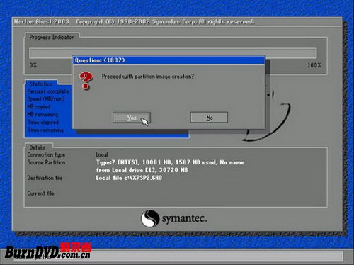- 第9步,最后打開(kāi)提示框,請(qǐng)用戶確認(rèn)是否要真的進(jìn)行創(chuàng)建分區(qū)映像的操作。單擊“Yes(是)”按鈕開(kāi)始創(chuàng)建系統(tǒng)分區(qū)映像,如圖2009012396所示。