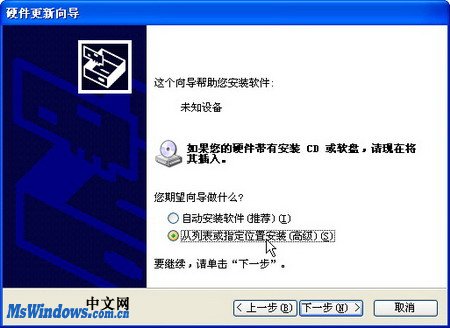 圖20100409125 “硬件更新向?qū)?rdquo;對話框