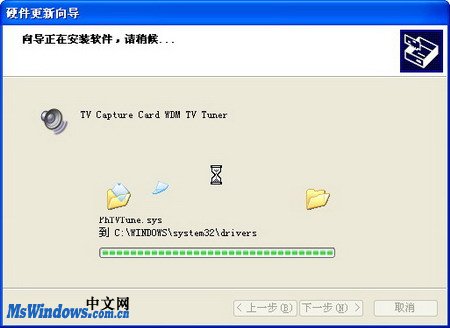 - 第6步,如果“硬件更新向?qū)?rdquo;能夠在指定的位置找到該硬件的驅(qū)動程序,則向?qū)ё詣娱_始安裝硬件驅(qū)動程序,如圖20100409128所示。