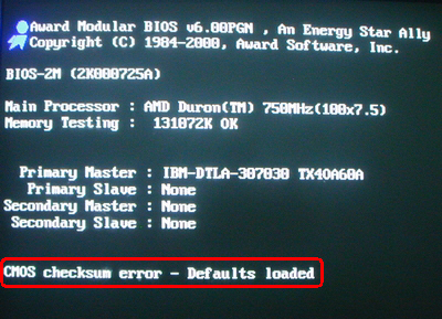 接著接通主機(jī)電源啟動(dòng)電腦,屏幕上就會(huì)提示BIOS中的數(shù)據(jù)已被清除,需要進(jìn)入BIOS重新設(shè)置。這樣,便可證明已成功對(duì)CMOS放電