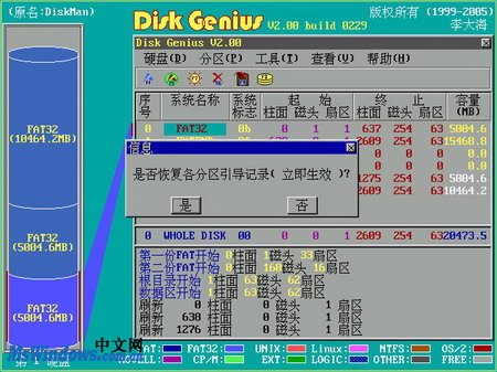 圖2010040988 確認(rèn)恢復(fù)分區(qū)表 - 第4步,接著Disk Genius會(huì)提示用戶是否恢復(fù)各分區(qū)引導(dǎo)記錄。選擇“是”按鈕并按回車(chē)鍵,如圖2010040989所示。