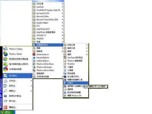 - 在電腦屏幕的左下角按“開始→程序→附件→記事本”,