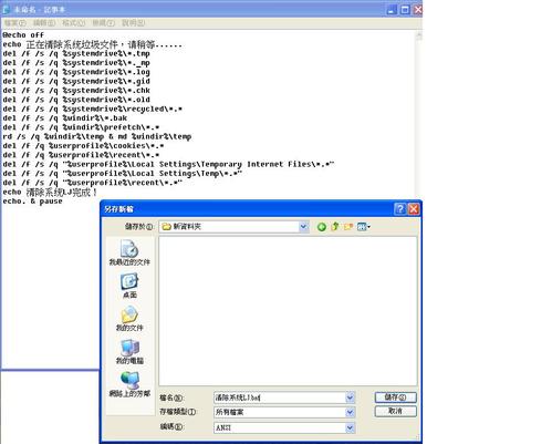 記住后綴名一定要是.bat,ok!你的垃圾清除器就這樣制作成功了!