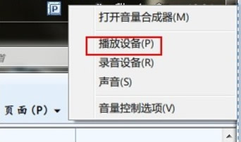 - 1、用鼠標(biāo)右鍵拉出桌面右下角音量調(diào)節(jié)的快捷菜單,然后選擇“播放設(shè)備”。