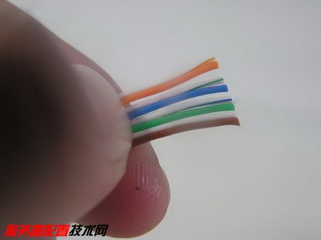 注意:網(wǎng)線鉗擋位離剝線刀口長(zhǎng)度通常恰好為水晶頭長(zhǎng)度,這樣可以有效避免剝線過長(zhǎng)或過短。如果剝線過長(zhǎng)往往會(huì)因?yàn)榫W(wǎng)線不能被水晶頭卡住而容易松動(dòng),如果剝線過短則會(huì)造成水晶頭插針不能跟雙絞線完好接觸。 - 第2步,剝除外包皮后會(huì)看到雙絞線的4對(duì)芯線,用戶可以看到每對(duì)芯線的顏色各不相同。將絞在一起的芯線分開,按照橙白、橙、綠白、藍(lán)、藍(lán)白、綠、棕白、棕的顏色一字排列,并用網(wǎng)線鉗 將線的頂端剪齊,如圖2008112737所示。