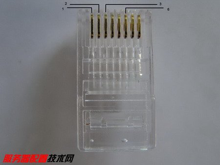 按照上述線序排列的每條芯線分別對(duì)應(yīng)RJ-45插頭的1、2、3、4、5、6、7、8針腳,如圖2008112738所示。