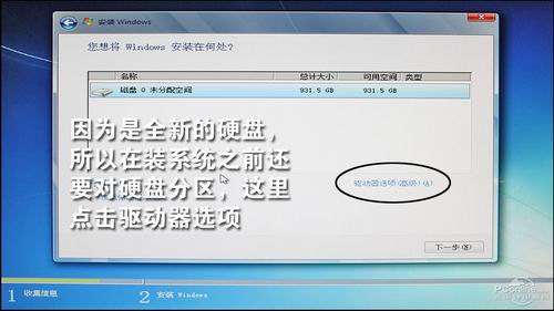 - 因為是新的硬盤,在裝系統(tǒng)前我們應(yīng)該要把硬盤分區(qū),這個是必須要先做的,用
