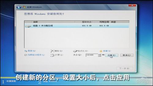 - 創(chuàng)建新的分區(qū),設(shè)置大小后,然后點擊應(yīng)用