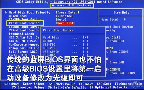 現(xiàn)在很多主板都提供了圖形化界面,操作很簡單,按DEL進入BIOS,把光驅(qū)設(shè)置成第一啟動項,把系統(tǒng)盤放到光驅(qū)里面,保存退出。