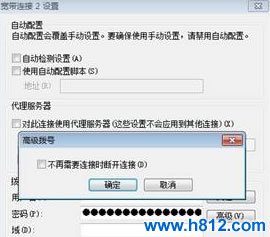 打開IE瀏覽器,點(diǎn)擊工具菜單選Internet選項(xiàng),切換到連接選項(xiàng)卡,選擇從不進(jìn)行撥號(hào)鏈接復(fù)選框后,依次單擊設(shè)置高級(jí)按鈕,最后將不再需要連接時(shí)斷開連接前的鉤去掉,這樣再也不會(huì)出現(xiàn)自動(dòng)斷網(wǎng)提示了。