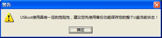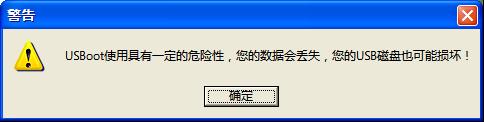 過程很簡單,插上你要制作的U盤,打開USBoot 1.7,它會提示“有一定的危險性等”,點確定進入