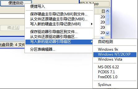點擊 “便捷啟動”,“寫入新的驅動器引導扇區(qū)”,選擇“WINDOWS NT/2K/XP”。
