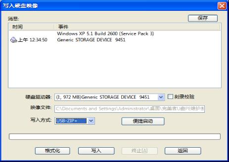 點擊“啟動光盤”,選擇“寫入硬盤鏡像...”,我之前制作DOS啟動盤時選擇的是ZIP工作模式,于是這里的“寫入方式”選擇“USB-ZIP+”(如果上面你選擇的是HDD工作模式,這里便選擇“USB-HDD+”的寫入方式)。