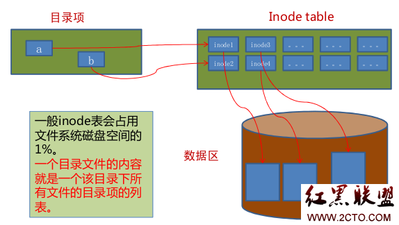 Linux 正統(tǒng)的文件系統(tǒng) ( 如 ext2 、 3 等 ) 將硬盤(pán)分區(qū)時(shí)會(huì)劃分出目錄塊、 inode Table 區(qū)塊和 data block 數(shù)據(jù)區(qū)域。 一個(gè)文件由一個(gè)目錄項(xiàng)、 inode 和數(shù)據(jù)區(qū)域塊組成。 Inode 包含文件的屬性 ( 如讀寫(xiě)屬性、 owner 等,以及指向數(shù)據(jù)塊的指針 ) ,數(shù)據(jù)區(qū)域塊則是文件內(nèi)容。 當(dāng)查看某個(gè)文件時(shí),會(huì)先從 inode table 中查出文件屬性及數(shù)據(jù)存放點(diǎn),再?gòu)臄?shù)據(jù)塊中讀取數(shù)據(jù)。