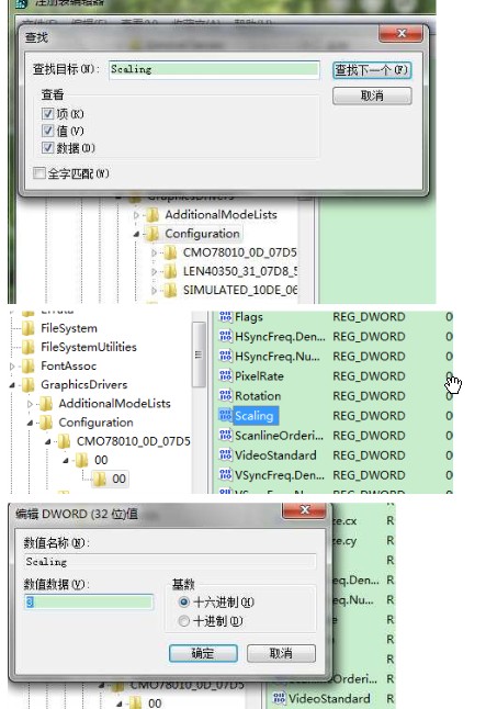 右鍵Configuration,選擇查找,輸入Scaling,在右框找到scaling,右鍵scaling修改