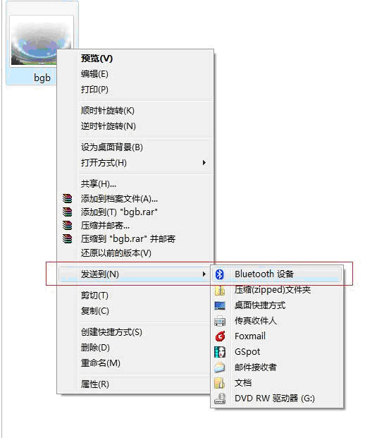 1.選中需要傳輸?shù)奈募谟益I快捷菜單中選擇發(fā)送到Bluetooth設(shè)備
