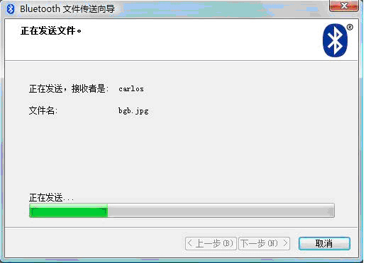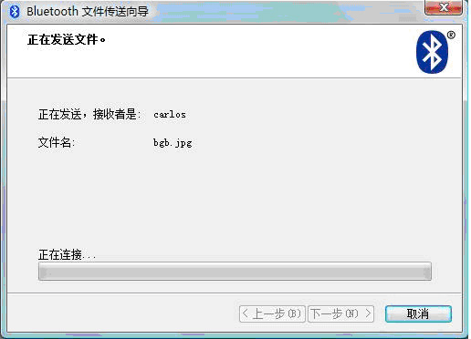 6.點(diǎn)擊“下一步”之后,下圖是電腦的顯示,同時(shí)在手機(jī)上也會(huì)出現(xiàn)相關(guān)提示“問(wèn)是否接受電腦發(fā)出的文件”此時(shí)同樣需要在手機(jī)上確認(rèn)接受