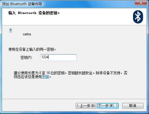 5.選擇是否使用密鑰(如果使用密鑰,通常我們都是使用1234作為我們的配對(duì)密鑰)
