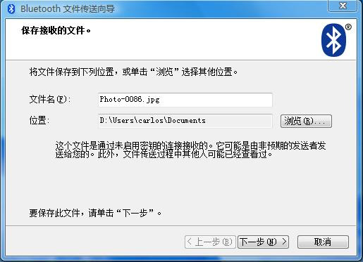 2.接受從手機(jī)傳送過(guò)來(lái)的文件,密鑰通常使用“1234”