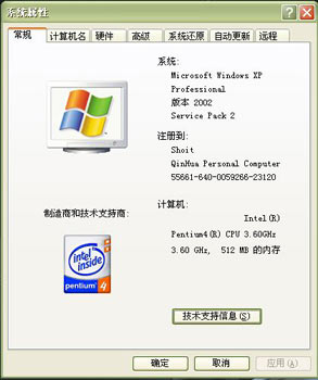 該圖是在我C4 2.4/256機子上的系統(tǒng)屬性,決非圖片修改。
