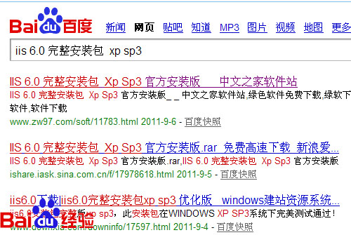 - 先在百度找到IIS 6.0,然后下載下來,當然其它的版本也可以,我這個是為了湊合系統(tǒng)。