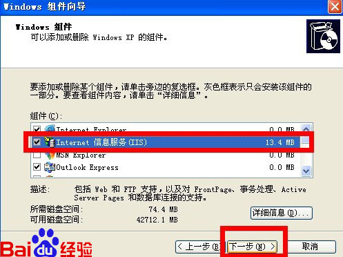 - 然后在internet信息服務(iis)那一欄打上勾,然后選擇下一步開始安裝