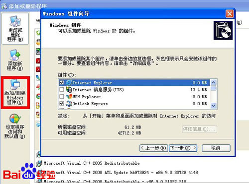 - 這時會彈出對話框,我們選擇添加/刪除windows組件,然后又彈出windows組件向導