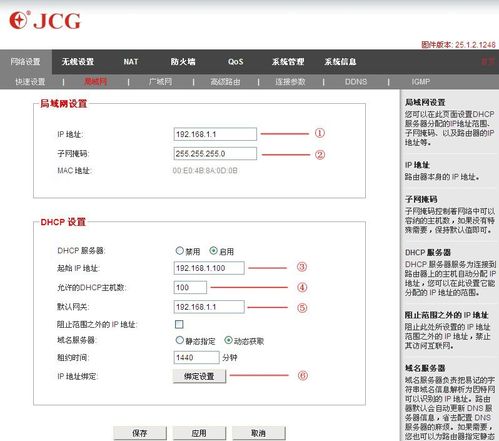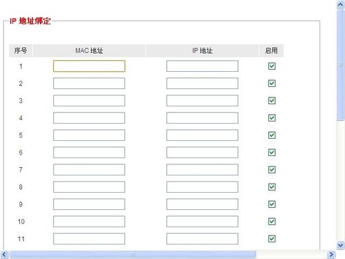 ⑥——綁定設(shè)置:您可以為指定的主機綁定一個 IP 地址,填入要綁定的主機的 MAC 地址和 IP 地址對即可。這是目前最有效的防止蹭網(wǎng)方法了,將信息填好后記得要保存修改哦。