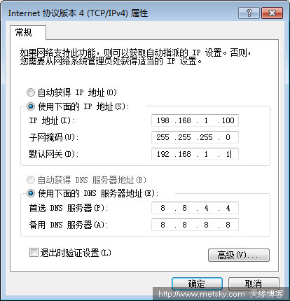 如果是DHCP動態(tài)分配地址,無法在這里正常指定多個IP地址,所以需關(guān)閉自動獲取IP地址,首先指定首要的IP地址(這里示例192.168.1.100)、子網(wǎng)掩碼和默認(rèn)網(wǎng)關(guān)。