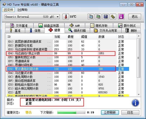 4.主要是從以下兩個(gè)方面判斷。馬達(dá)啟動(dòng)/停止計(jì)數(shù) :這個(gè)數(shù)值每通電一次數(shù)值增加一次。累計(jì)間計(jì)數(shù):指硬盤(pán)累計(jì)通電時(shí)間(哈哈本人的日立移動(dòng)硬盤(pán)用了三年累計(jì)用了16天時(shí)間。還算是不錯(cuò)的喲?。。。?/p>
