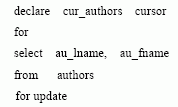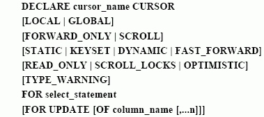 DECLARE cursor_name [INSENSITIVE] [SCROLL] CURSOR