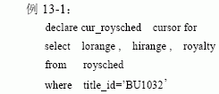 如果在CURSOR 前使用了SCROLL 或INSENSITIVE 保留字,則不能在CURSOR 和FOR select_statement 之間使用任何的保留字。反之同理。