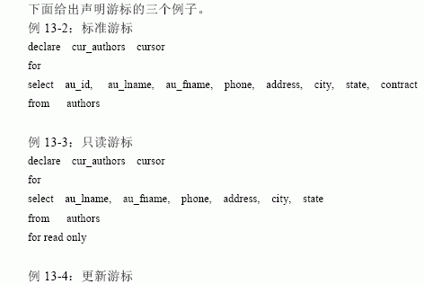 是定義結(jié)果集的SELECT 語句。應(yīng)該注意的是,在游標中不能使用COMPUTE、COMPU- TE BY、 FOR BROWSE、 INTO 語句。 - READ ONLY