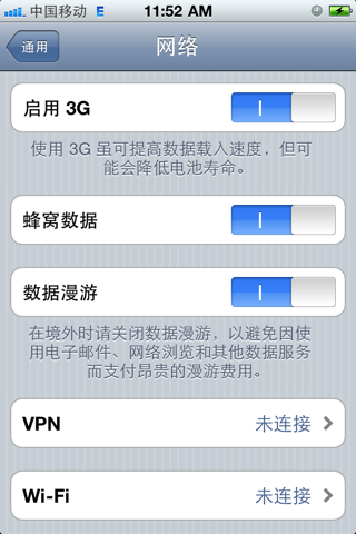 無論是iPhone4還是3GS,升級(jí)4.01后如果用聯(lián)通卡激活,網(wǎng)絡(luò)設(shè)置里都沒有APN選項(xiàng),部分用戶用移動(dòng)卡激活會(huì)有APN顯示,但是也有更多用戶的找不到設(shè)置項(xiàng)。這里歐若建議,手機(jī)激活時(shí)盡量選擇自己常用的手機(jī)卡,聯(lián)通的網(wǎng)絡(luò)設(shè)置是預(yù)置的,不需任何操作就可以上網(wǎng)和彩信,而移動(dòng)的需后續(xù)設(shè)置APN為cmnet。這里不必再說聯(lián)通3G卡設(shè)置了,單說移動(dòng)卡,如果激活用移動(dòng)卡還是找不到蜂窩數(shù)據(jù)設(shè)置顯示,請(qǐng)嘗試一下操作。