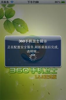 彈出提示"正在配置安全服務(wù)…",配置后會(huì)自動(dòng)刷新桌面, 使360手機(jī)衛(wèi)士安全服務(wù)生效。