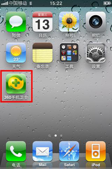 安裝結(jié)束后請(qǐng)重啟iPhone,桌面出現(xiàn)360手機(jī)衛(wèi)士圖標(biāo),點(diǎn)擊"360手機(jī)衛(wèi)士"圖標(biāo)。
