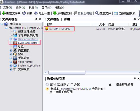 將安裝包復(fù)制到ifunbox里的Cydia App Install文件夾里,然后重新啟動(dòng)手機(jī),即可自動(dòng)完成安裝。