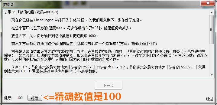 按下一步進入教程第二關,需要掃描的精確數(shù)值是100