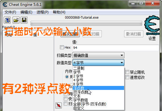 浮點數(shù)的長度是4字節(jié),使用4字節(jié)也可搜索到浮點數(shù),但需要使用模糊搜索。