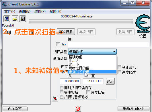 此時點擊 新掃描 然后選擇 未知初始數(shù)值