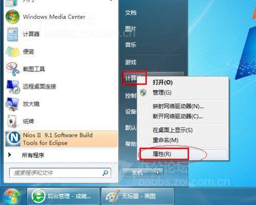 設(shè)置工作組:在添加目標(biāo)打印機(jī)之前,首先要確定局域網(wǎng)內(nèi)的計(jì)算機(jī)是否都處于一個(gè)工作組,具體過程如下:1. 點(diǎn)擊【開始】按鈕,在【計(jì)算機(jī)】上右鍵,選擇【屬性】,如下圖: