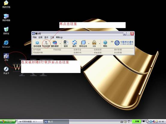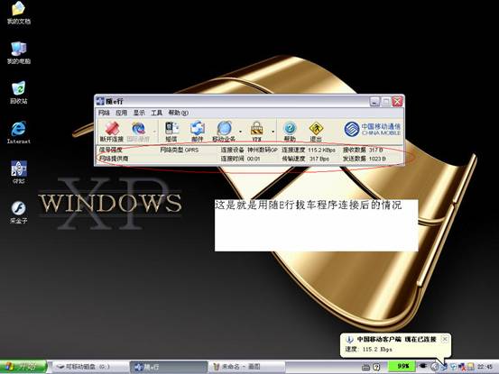 在這里我想推薦大家不要使用這款神州數(shù)碼DCWL-380GGPRS上網(wǎng)卡原配的拔號程序,用中國移動隨E行的拔號程序進(jìn)行的話將是更加的方便,幾乎不用做什么設(shè)置直接拔就行了,而且很穩(wěn)定!見以下的圖片。