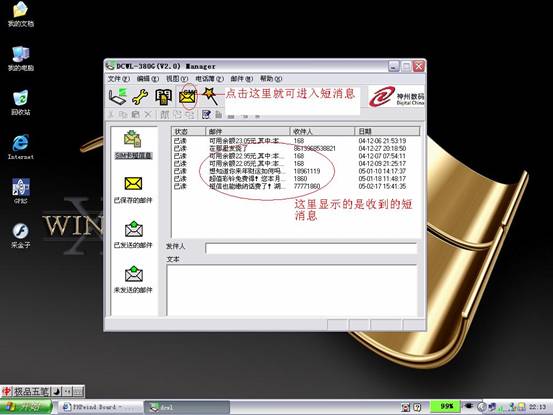 這里大家不要讓數(shù)據(jù)傳輸速率為115Kbps給迷住了,雖然顯示為115Kbps,但實際上只有9 Kbps(這是我在武漢測試出來的速率,這個速率會隨著城市和不同而不同,我在武漢周邊去測試過,速率有的只有4 Kbps,但是對于收發(fā)郵件及上網(wǎng)瀏覽網(wǎng)頁來說還是可以的,但是不可能用來玩任何的網(wǎng)絡(luò)游戲那怕是小的游戲也不行)。以這個傳輸速率來說,最適合經(jīng)常出差而又需要接入INTERNET的商務(wù)人士了。此外還可以利用這款神州數(shù)碼DCWL-380G收發(fā)短消息。下圖是查看自己收到的短消息。