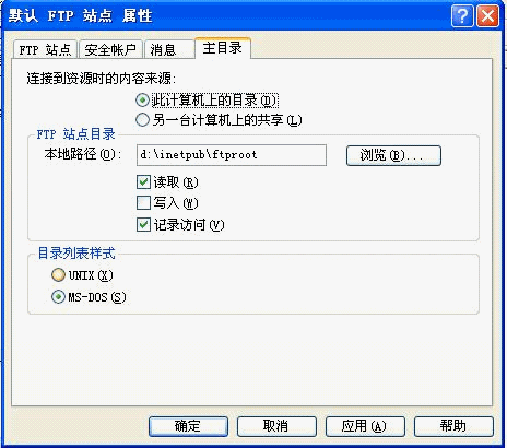 在WWW服務(wù)里已經(jīng)介紹過(guò)了,同WWW服務(wù)一樣,IIS默認(rèn)有一個(gè)默認(rèn)的FTP站,因此你可以通過(guò)修改默認(rèn)FTP站點(diǎn)來(lái)滿(mǎn)足你的需要。