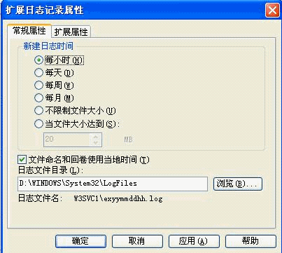 設(shè)置日志屬性,一般新建日志時(shí)間設(shè)置為每小時(shí),下面可以設(shè)置日志文件目錄,不建議使用默認(rèn)路徑。