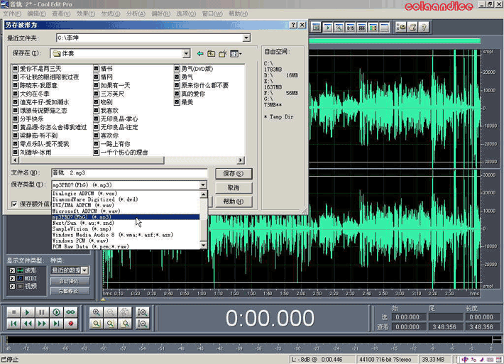 以前的介紹中是讓大家存為wav格式,其實mp3也是絕對可以的,并且可以節(jié)省大量空間。